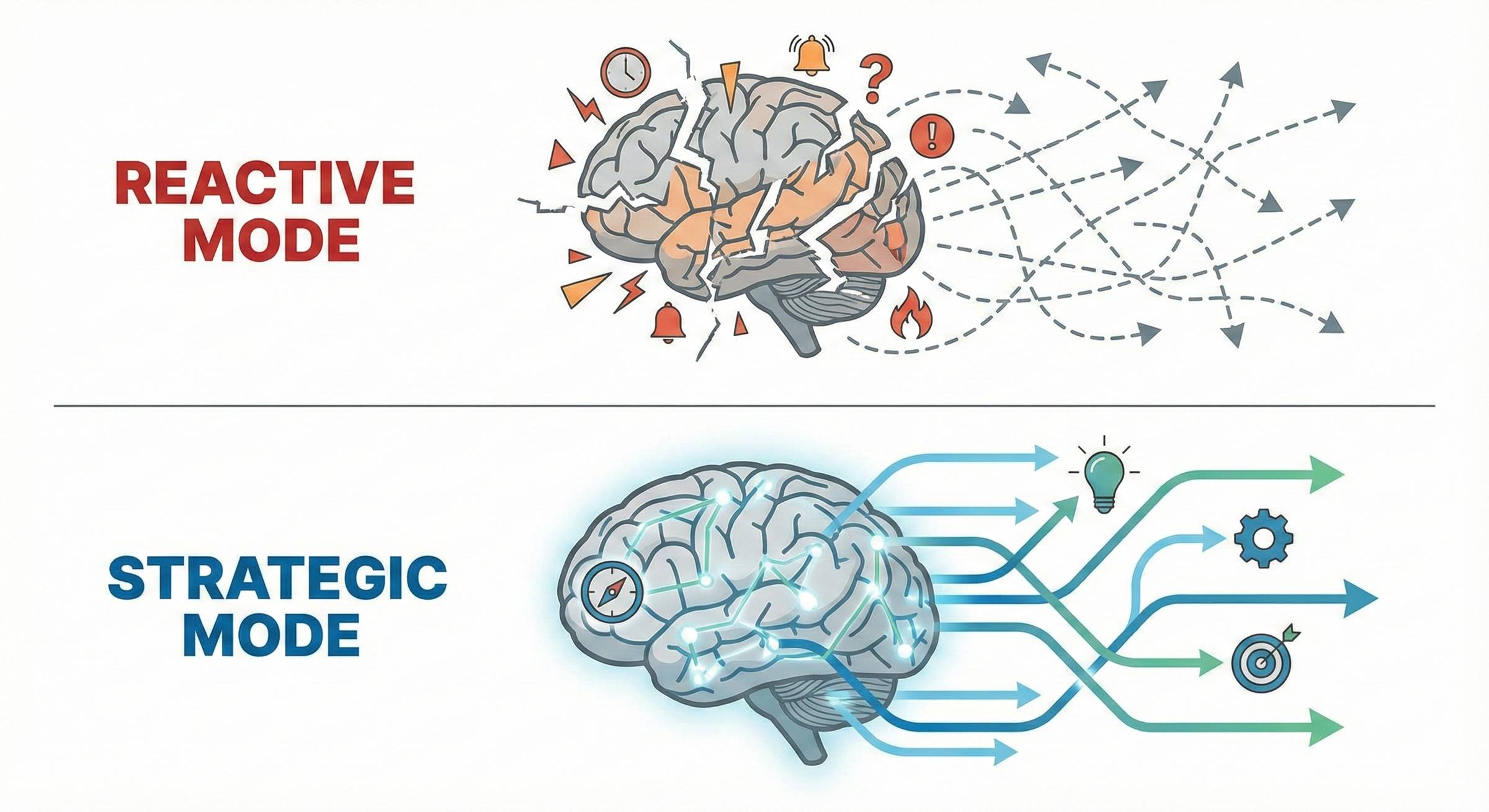 Your brain has two modes. There's the mode where you're reacting, responding, putting out fires. That's useful. You need it.